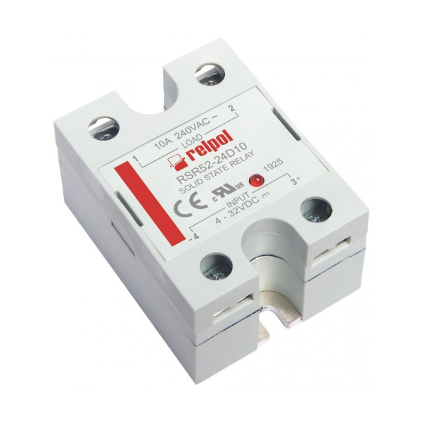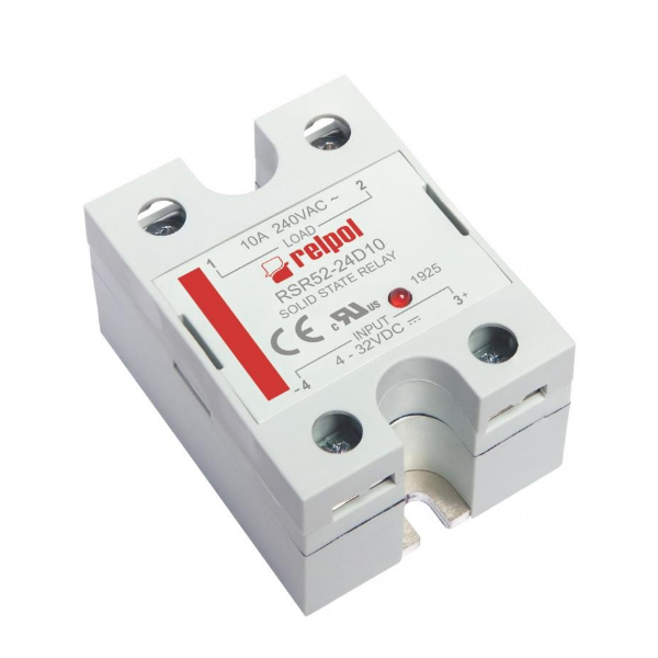 To wysokiej jakości produkt jednofazowy z wyjściem SCR (tyrystory), który z powodzeniem sprawdza się w wielu aplikacjach np.: maszyny do produkcji żywności, maszyny do przetwórstwa tworzyw sztucznych, inkubatorach, maszyny olejarskich, w ogrzewaniu, wentylacji, klimatyzacji, aplikacjach oświetleniowych. Bardzo dobrze sprawdzają się do sterowania w komorach temperaturowych, fontannami, temperaturą w piecach. Przekaźniki RSR52 załączają obciążenie jednofazowe w zakresie napięć od 48 do 660V AC przy prądach obciążenia od 10 do 80 A.