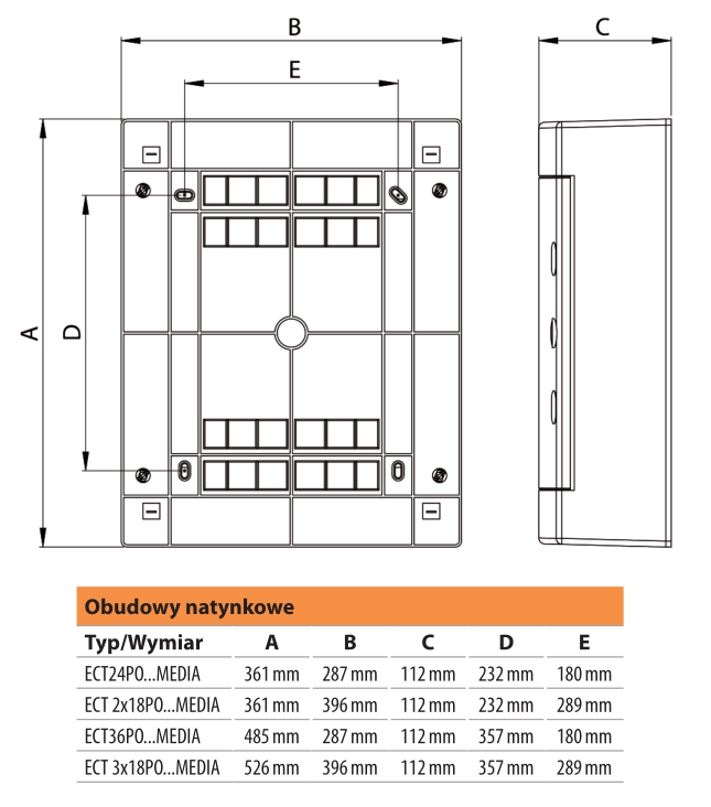 - Obudowy dostępne również w wariancie podtynkowym (ECM…MEDIA / ECM…MEDIA/EMPTY).