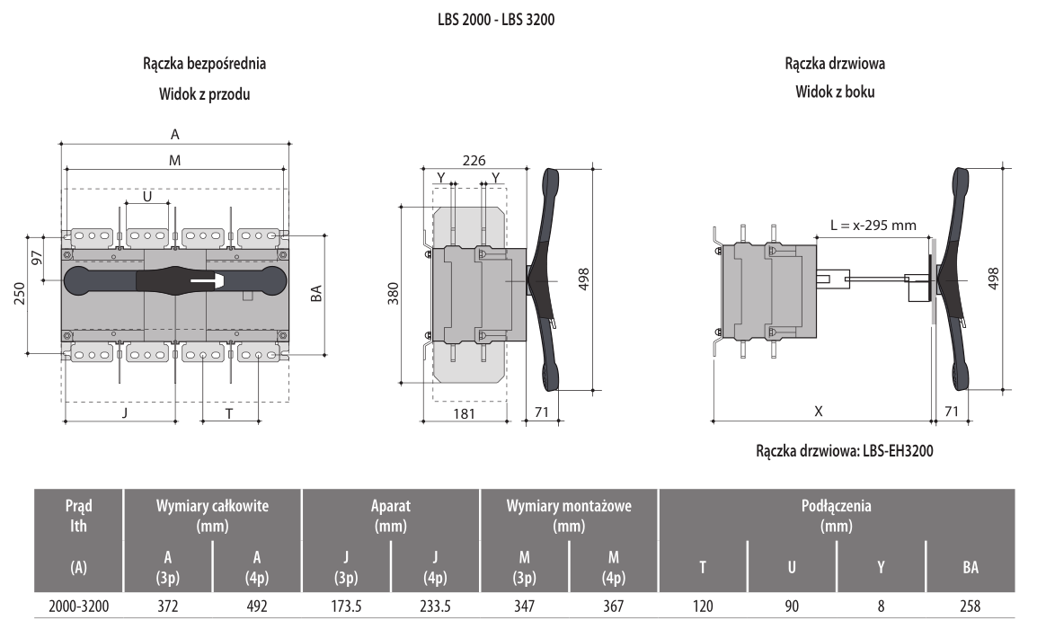 - Rączka pojedyńcza do 630A. Rączka dwustronna od 800A.