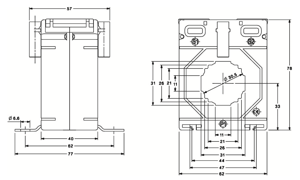 - Montaż bezpośrednio na szynie prądowej lub płycie montażowej za pomocą dołączonych uchwytów.
