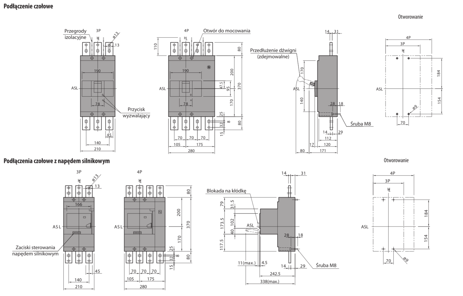 Wersja wykonania danego kompaktowego wyłącznika mocy: trój- i czterobiegunowe.