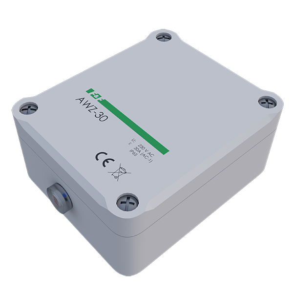 Włącznik zmierzchowy AWZ‑30 posiada układ opóźniający załączenie i wyłączenie oświetlenia, który niweluje wpływ zakłóceń (np. wyładowań atmosferycznych) na pracę automatu.