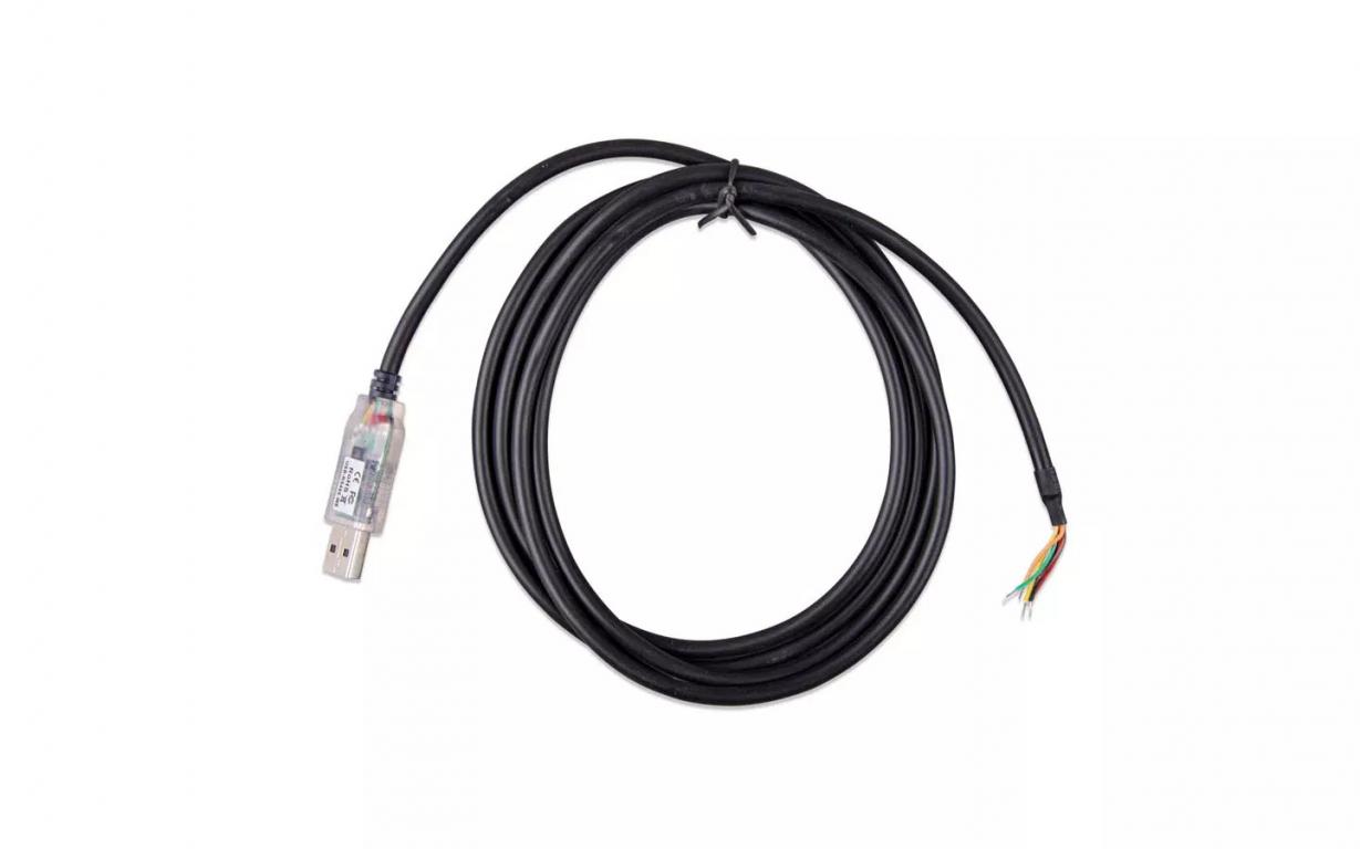 Przewód konwerter RS485 tu USB dedykowany jest do podłączania urządzeń po protokole komunikacyjnym RS485 do . Wykorzystywany może być np przy współpracy z urządzeniem MultiPlus II przy pracy jako ESS magazyn energii lub z innymi urządzeniami marki Victron jak Quattro. Występuje w dwóch długościach 1.8 metra oraz 5 metrów. Przewód z jednej strony zakończony zwykłym drucikiem z drugiej końcówką USB wtyk.