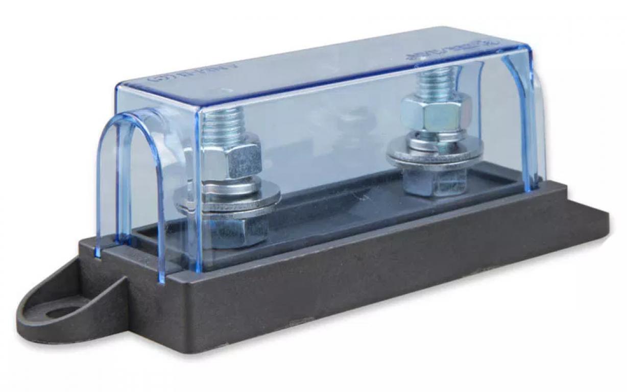 Oprawa bezpiecznika MEGA - fuse V.E. przeznaczona jest do zabezpieczenia przed zwarciami żelowych w fotowoltaicznych systemach zasilania. W oprawie możliwe jest obsadzenie bezpiecznika o mocy od 60A do 500A. Bezpiecznik należy montować jak najbliżej akumulatora na przewodzie dodatnim. Bezpieczniki MEGA - fuse V.E. to pewność i bezpieczeństwo. Należy pamiętać, że zwarcie akumulatora o dużej pojemności może doprowadzić nawet do wybuchu. Bezpieczniki MEGA - fuse V.E. chronią nas zarówno przez niebezpieczeństwem, jak i przed ryzykiem zniszczenia akumulatora.