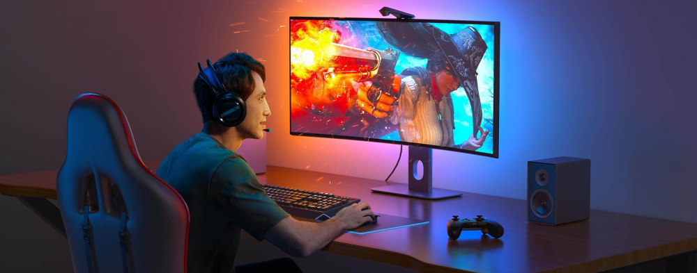 Govee DreamView G1 to rozwiązanie, które zapewni Ci niezapomniane wrażenia świetlne podczas gry. Dzięki technologii RGBIC, która wykorzystuje pełne spektrum kolorów, będziesz mógł dopasować oświetlenie do swojego nastroju lub stylu rozgrywki. Ta zaawansowana technologia pozwala na dynamiczne efekty, takie jak błyskawice czy pulsujące fale świetlne, co jeszcze bardziej potęguje wrażenia podczas gry. Oświetlenie RGBIC to nie tylko wiodące rozwiązanie w branży, ale także wspaniały sposób na ubogacenie swojego stanowiska do grania.