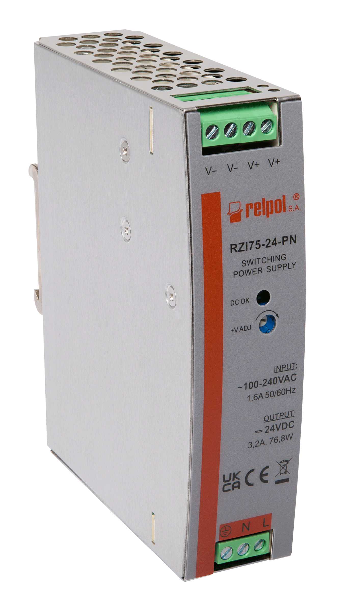 Zasilacz impulsowy przemysłowy 90-264 V AC 24V DC 3,2A moc 76,8W RZI75-24-PN