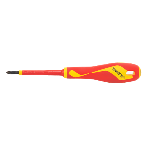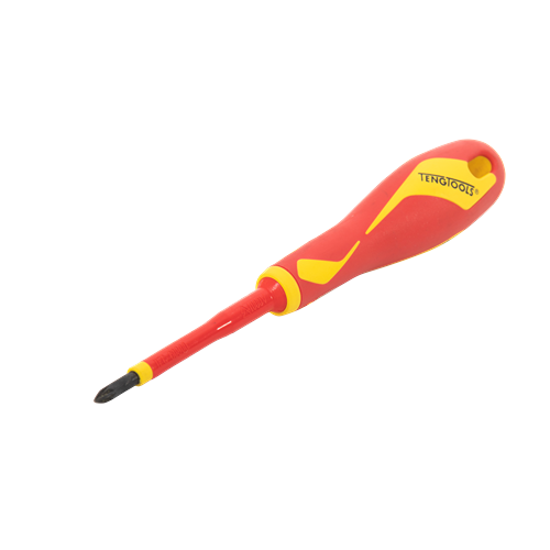 Wkrętak izolowany Teng Tools z końcówką PZ1 x 80mm przeznaczony do prac pod napięciem do 1000V. Wkrętak posiada izolację dwuwarstwową, która nakładana jest jeszcze przed wtryskowym uformowaniem rękojeści. Osłona izolacyjna jest zintegrowana z członem, uformowana tak by zwiększyć funkcjonalność. Grubsza część w okolicy chwytu i cieńsza przy grocie odpowiada za bezpieczeństwo i dobrą dostępność w trakcie precyzyjnych prac. Ergonomiczny kształt rękojeści zapewnia pewny chwyt. Otwór w rękojeści umożliwia zastosowanie zabezpieczeń chroniących narzędzia przed upadkiem. Czarna końcówka grotu. Każdy wkrętak jest testowany i dopuszczany do użytku indywidualnie. Wkrętaki zaprojektowane i wyprodukowane są zgodnie z normami DIN5260, DIN5264 i IEC60900 (EN60900) — wkrętaki spełniają wszystkie wymogi stosowania ich do prac pod napięciem do 1000V(przez specjalnie przeszkolony personel).