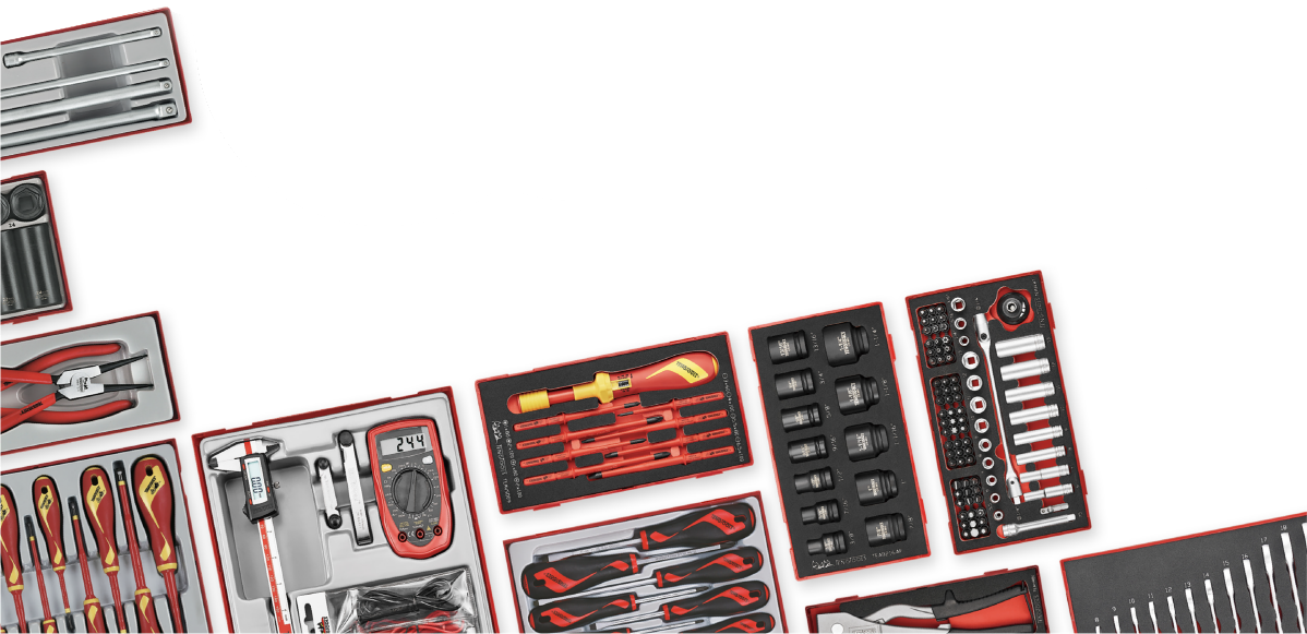 Nasz system zarządzania narzędziami oferuje najszerszy na rynku wybór rozwiązań. Różnorodne systemy przechowywania, od dużych szaf stacjonarnych po małe przenośne walizki serwisowe i ponad 240 zestawów narzędzi do wyboru, pozwalają łatwo tworzyć indywidualne komplety narzędzi, dokładnie odpowiadające Twoim potrzebom. System zarządzania narzędziami TengTools ma strukturę modułową, co oznacza, że standardowe zestawy pasują do wszystkich naszych systemów przechowywania narzędzi, umożliwiając w razie potrzeby wyjęcie pewnych zestawów np. z wózka narzędziowego i przełożenie do przenośnej walizki serwisowej, celem użycia do konkretnej pracy w terenie.
