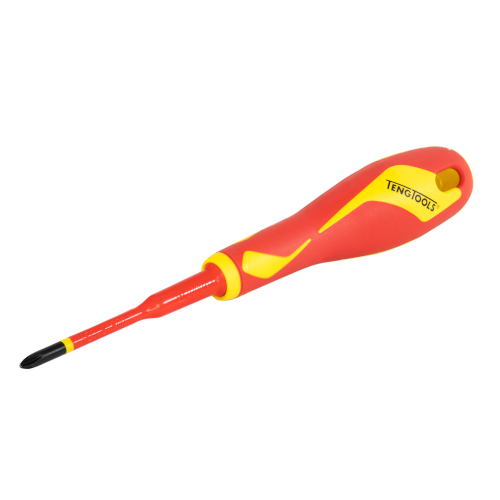 Wkrętak izolowany Teng Tools z końcówką PH1 x 80mm przeznaczony do prac pod napięciem do 1000V. Wkrętak posiada izolację dwuwarstwową, która nakładana jest jeszcze przed wtryskowym uformowaniem rękojeści. Osłona izolacyjna jest zintegrowana z członem, uformowana tak by zwiększyć funkcjonalność. Grubsza część w okolicy chwytu i cieńsza przy grocie odpowiada za bezpieczeństwo i dobrą dostępność w trakcie precyzyjnych prac. Ergonomiczny kształt rękojeści zapewnia pewny chwyt. Otwór w rękojeści umożliwia zastosowanie zabezpieczeń chroniących narzędzia przed upadkiem. Czarna końcówka grotu. Każdy wkrętak jest testowany i dopuszczany do użytku indywidualnie. Wkrętaki zaprojektowane i wyprodukowane są zgodnie z normami DIN5260, DIN5264 i IEC60900 (EN60900) — wkrętaki spełniają wszystkie wymogi stosowania ich do prac pod napięciem do 1000V(przez specjalnie przeszkolony personel).