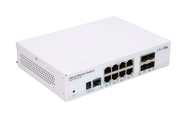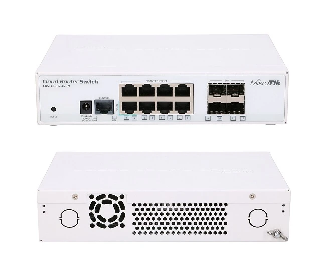 Cloud Router Switch 112-8G-4S-IN to kompaktowe i niedrogie w eksploatacji urządzenie serii CRS. Wyposażone jest w osiem portów Gigabit Ethernet i cztery porty SFP. Seria produktów CRS, zasilana przez znany RouterOS, łączy w sobie najlepsze cechy w pełni funkcjonalnego routera i przełącznika Layer 3. Wszystkie opcje konfiguracji są dostępne w specjalnym menu przełącznika, jest także możliwość usunięcia portów z konfiguracji przełącznika i wykorzystanie ich do celów routingu.