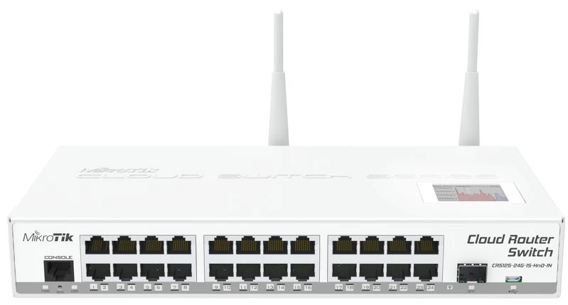 z dowolną liczbą portów oraz inteligentny przełącznik o pełnej szybkości łącza, a wszystko to w jednym urządzeniu. CRS125 oferuje także- 24 gigabitowe porty, jedną klatkę SFP, port micro-USB.
