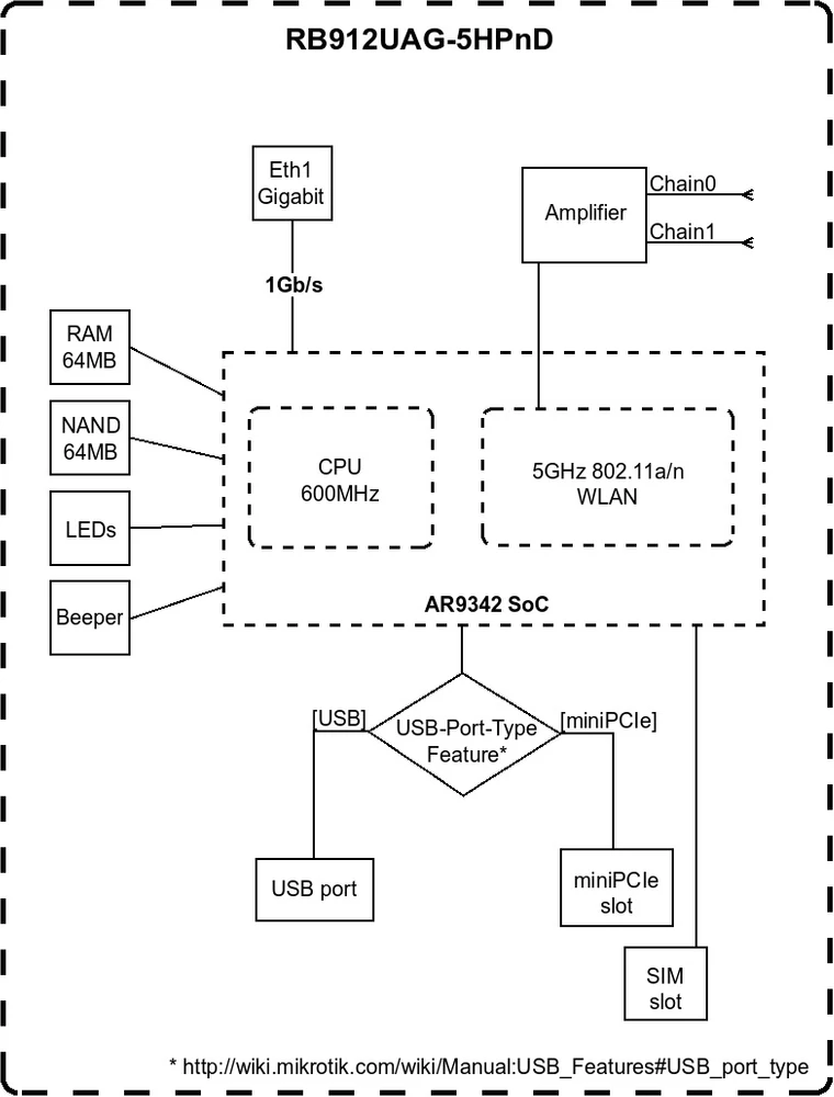 Routerboard RB912UAG-5HPnD to niesamowicie wszechstronne urządzenie. Jest to kompaktowy router bezprzewodowy, który posiada zintegrowaną kartę bezprzewodową o wysokiej mocy 5 GHz oraz dodatkowe gniazdo miniPCIe na kartę bezprzewodową 802.11 lub 3G. Dzięki gigabitowemu portowi można w pełni wykorzystać potencjał sieci bezprzewodowej 802.11n.