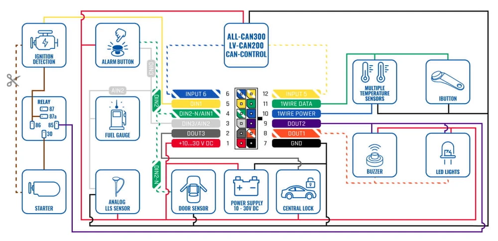 Programowalne wejścia, różne konfigurowalne scenariusze dla wyjść cyfrowych (brzęczyk, immobiliser, blokada drzwi, światła sygnalizacyjne, itp.) wraz z obsługą 4G, czynią to urządzenie jednym z najbardziej funkcjonalnych i elastycznych na świecie.