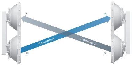 AirFiber®24 obsługuje FDD (Frequency Division Duplexing) w trybie pełnego dwukierunkowego przesyłu danych, co oznacza, że opóźnienia są mniejsze niż <1 ms. To przekłada się na większą wydajność sieci łącz operatorskich.