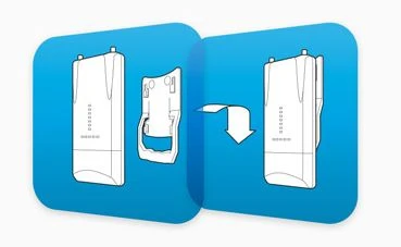 Każda antena airMAX ma wbudowany uchwyt Rocket, więc do zainstalowania stacji bazowej Rocket BaseStation nie są potrzebne żadne narzędzia.