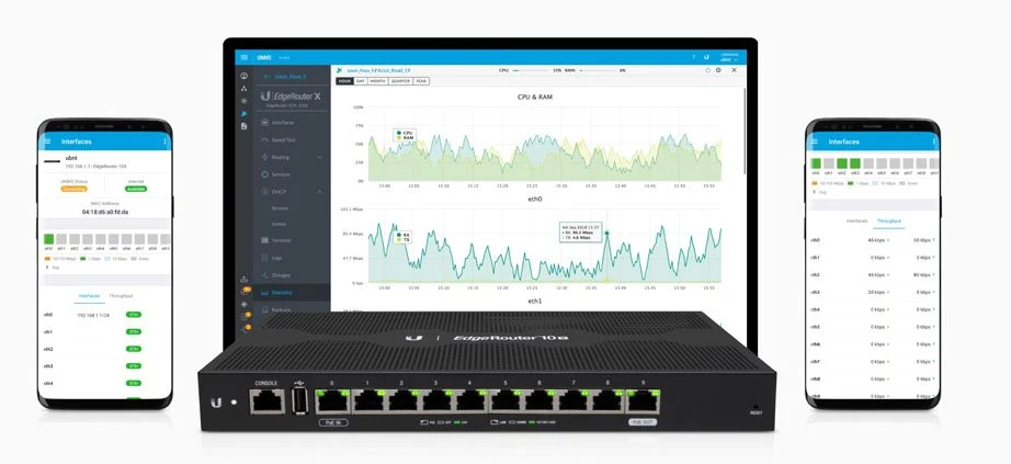 EdgeRouter 10X jest obsługiwany i zarządzany przez wszechstronny kontroler UNMS z intuicyjnym interfejsem użytkownika. Jedna płaszczyzna sterowania zarządza zarejestrowanymi urządzeniami EdgeMAX w wielu lokalizacjach.