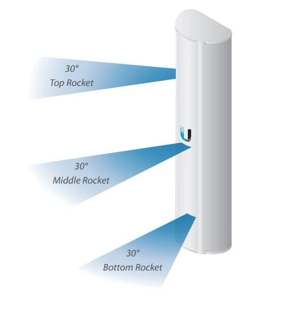 Trzy radia Prism Rocket 5 AC, które są zainstalowane na górze, pośrodku i na dole anteny, niezależnie transmitują i odbierają w obrębie odpowiadającej im 30° szerokości wiązki.