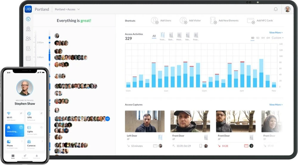 Łatwe zdalne zarządzanie urządzeniami Access za pomocą jednego prostego interfejsu. Możesz ustawić harmonogram, zasady dostępu do różnych urządzeń. Łatwe Przypisywanie praw dostępu do kart NFC. Prowadzenie szczegółowych dzienników, sporządzanie Wykresów, przeglądanie statystyki.