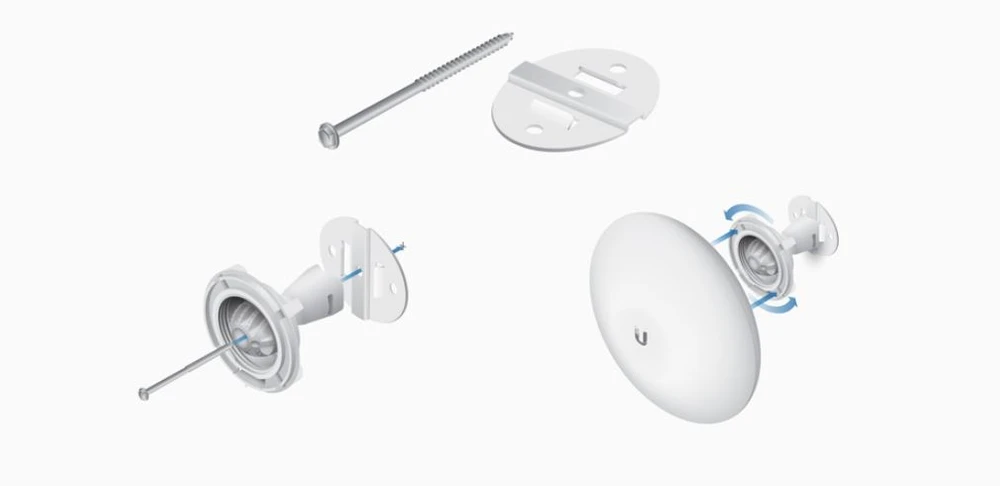 NanoBeam jest łatwy w montażu na różnych powierzchniach, takich jak słupy lub ściany, dzięki możliwości trójosiowego wyrównywania. W przypadku montażu na słupie nie potrzebujesz żadnych śrub, a do montażu na ścianie wystarczy jedna śruba ścienna.