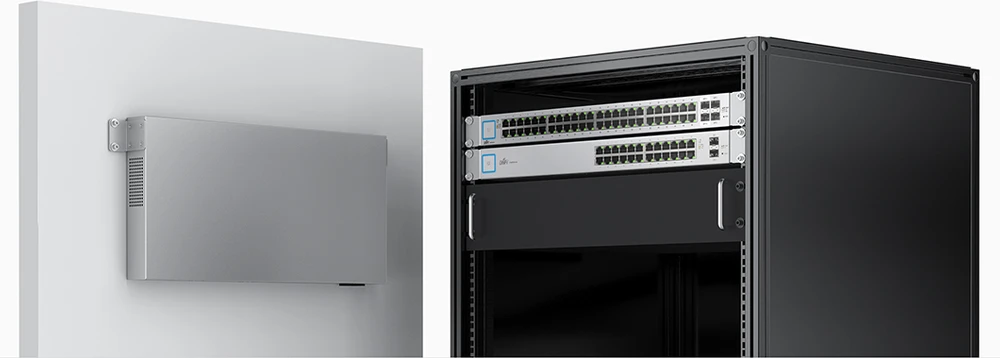 Przełącznik UniFi US-16-150W może być umieszczony na biurku lub zamontowany na ścianie oraz w szafie typu Rack.