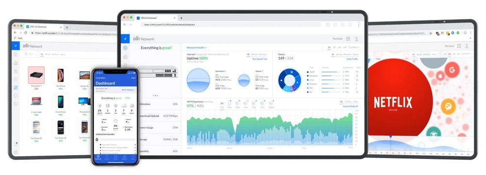 Kontroluj bezproblemowo wszystkie swoje urządzenia za pomocą oprogramowania UniFi. W urządzeniu dostępne są zaawansowane funkcje, takie jak głęboka analiza pakietów, VPN, zarządzanie siecią, hotspot i analiza danych w czasie rzeczywistym.