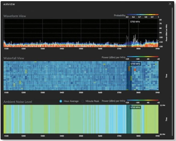 airView umożliwia identyfikację sygnatur szumów i zaplanowanie sieci w taki sposób, aby zminimalizować zakłócenia sygnału. airView wykonuje następujące funkcje: