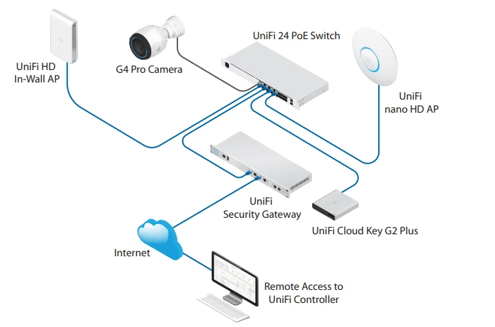 Zarządzany i konfigurowany przez kontroler sieci UniFi z obsługą aplikacji mobilnych UniFi przełącznik USW-24-POE oferuje szeroki pakiet zaawansowanych protokołów i funkcji przełączania warstwy 2, w tym tryb pracy (switching, mirroring lub aggregate) na port. Sterownik sieciowy UniFi i aplikacja mobilna umożliwiają administratorom konfigurowanie i monitorowanie praktycznie wszystkich funkcji przełącznika w graficznym interfejsie użytkownika z dowolnego miejsca.