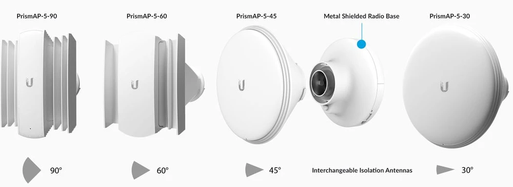 Wymienna antena pozwala dostosować wiązkę do konkretnych zastosowań i warunków otoczenia. Stacja PrismStation AC osiąga maksymalny zysk przy minimalnym zajmowanym obszarze.