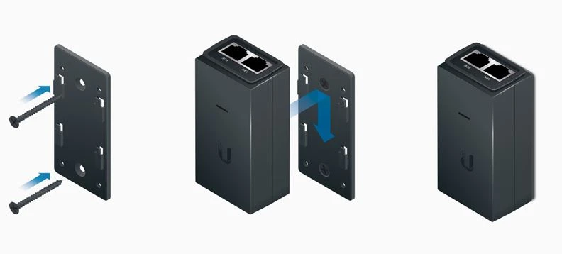Modele 15 V, 0,8 A i 24 V, 0,5 A, POE-15-12W, POE-24-12W i POE-24 12W-G współpracują z airGateway w celu mostkowania połączeń airMAX z siecią Wi-Fi.