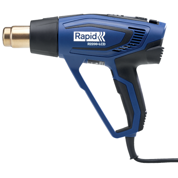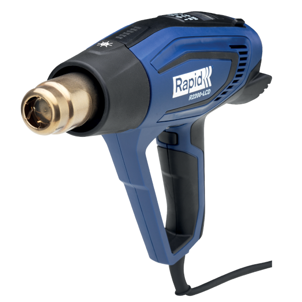Opalarka Rapid R2200‑LCD, posiada moc 2200 W, Ekran LCD, możliwość ustawienia temperatury co 10°C aż do 650°C. Ceramiczny system grzewczy pozwala osiągnąć wysokie temperatury i poziomy przepływu powietrza. W połączeniu z dużą mocą 2200W otrzymujemy profesjonalne narzędzie, które sprawdzi się do najbardziej wymagających prac. Wskaźnik ciepła resztkowego miga na czerwono do momentu ostygnięcia dyszy do bezpiecznego poziomu. Pomaga to w sprawnej wymianie akcesoriów i bezpiecznym przechowywaniu. Wyjątkowo miękki uchwyt zapewnia komfort. Stabilna podstawa pozwala na wygodną i precyzyjną pracę w pozycji stojącej. Szeroki wybór akcesoriów (dysze, osłonki termokurczliwe) dostępne oddzielnie.