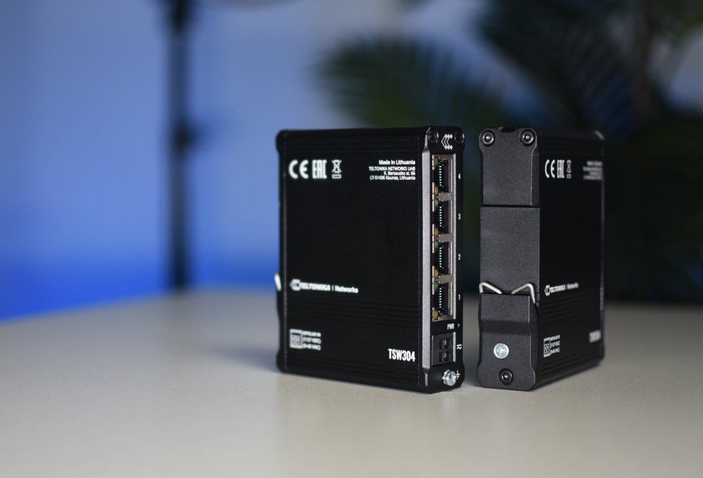 TSW304 to pierwszy niezarządzalny przełącznik Teltonika Networks ze zintegrowanym, wbudowanym uchwytem na szynę DIN oraz 4 portami Gigabit Ethernet.