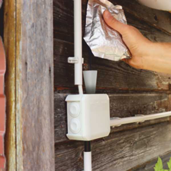 Uniwersalna puszka przelotowo-odgałęźna do żył o przekroju do 2,5mm2, w zestawie z nieusuwalną żywicą EG i złączkami