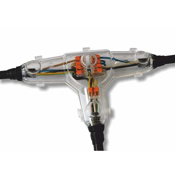 Żywiczna mufa rozgałęźna typu T ze złączkami WAGO dla przewodów o przekrojach do 4mm2
