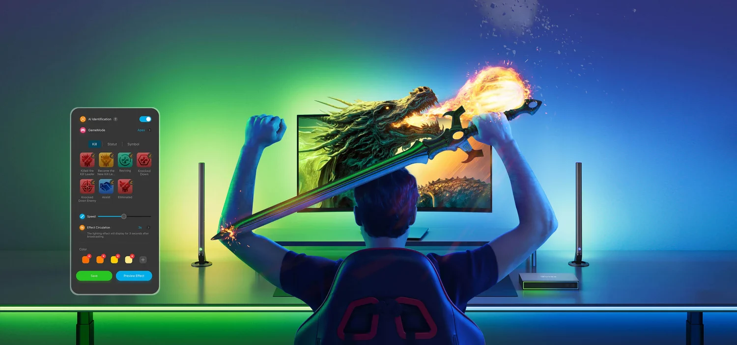 Opracowany przez Govee algorytm CogniGLow™ analizuje i przetwarza ponad 100 000 obrazów dla każdego kompatybilnego tytułu gry, umożliwiając niemal zerowe opóźnienie rozpoznawania w czasie rzeczywistym działań i wydarzeń w grze, takich jak wybór postaci, użycie przedmiotów i zabójstwa bossów, zapewniając graczom zupełnie nowe, zaawansowane i wciągające wrażenia świetlne. Efekty AI są obecnie kompatybilne z grami Apex Legends, Valorant, Overwatch i League of Legends, a wkrótce pojawią się kolejne tytuły.