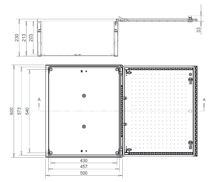 - Od góry obudowa posiada wysunięty daszek który zabezpiecza przed wnikaniem wody kiedy drzwi są otwarte. Chroni on również uszczelkę przed długotrwałym kontaktem z cieczami co mogłoby mieć negatywny wpływ na właściwości poliuretanowej uszczelki przy spadkach temperatury.
