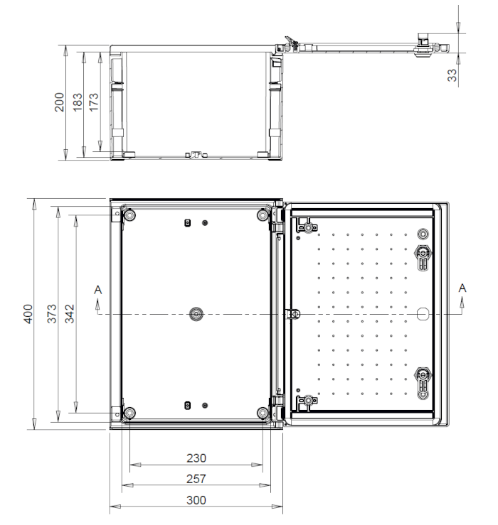 - Od góry obudowa posiada wysunięty daszek który zabezpiecza przed wnikaniem wody kiedy drzwi są otwarte. Chroni on również uszczelkę przed długotrwałym kontaktem z cieczami co mogłoby mieć negatywny wpływ na właściwości poliuretanowej uszczelki przy spadkach temperatury.