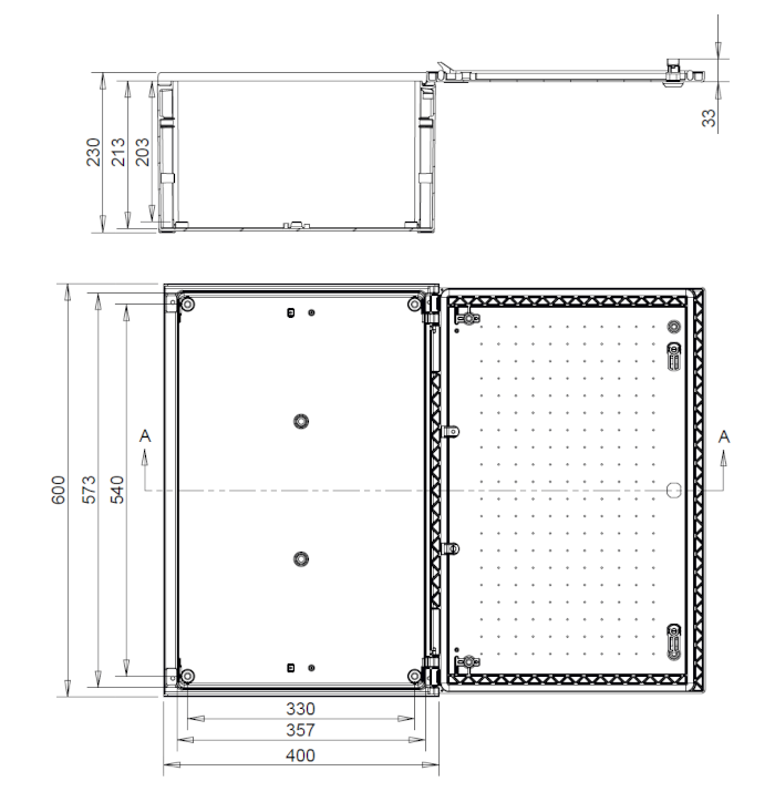 - Od góry obudowa posiada wysunięty daszek który zabezpiecza przed wnikaniem wody kiedy drzwi są otwarte. Chroni on również uszczelkę przed długotrwałym kontaktem z cieczami co mogłoby mieć negatywny wpływ na właściwości poliuretanowej uszczelki przy spadkach temperatury.