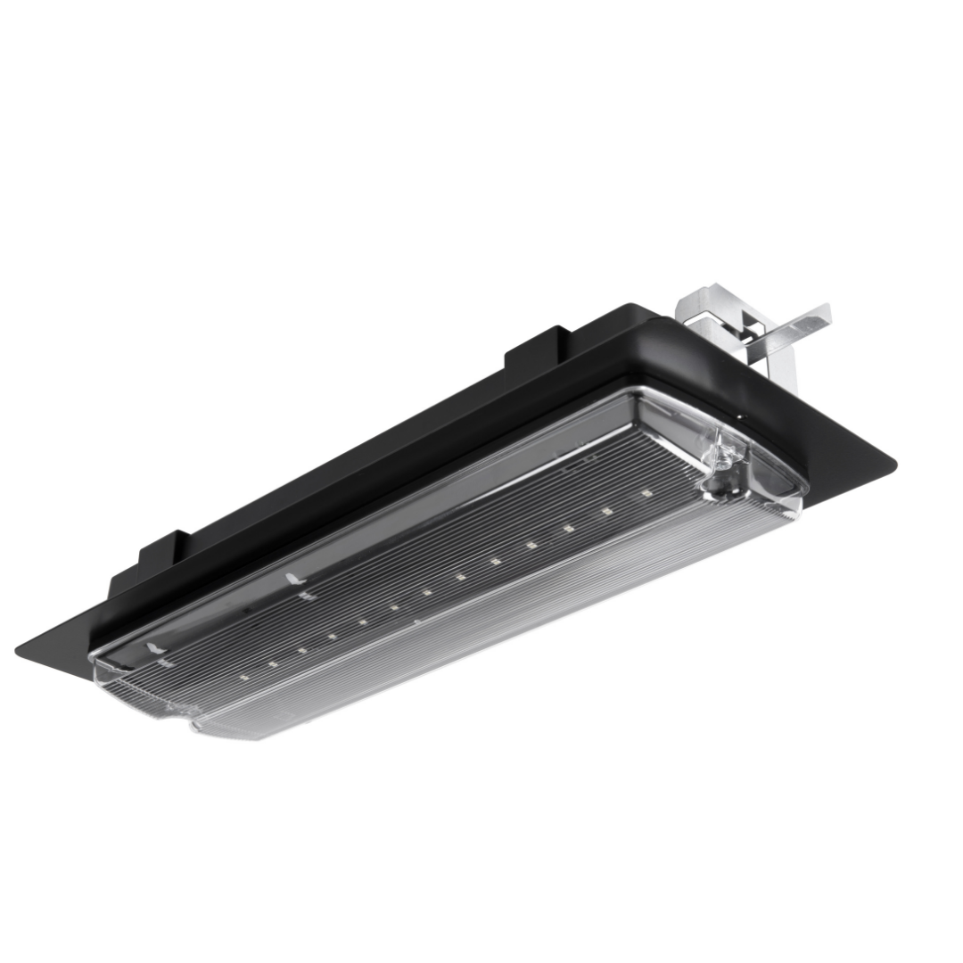 Dostępna oprawa w wersji ewakuacyjnej oraz opcjonalny zestaw dwustronny DS do podświetlania piktogramów