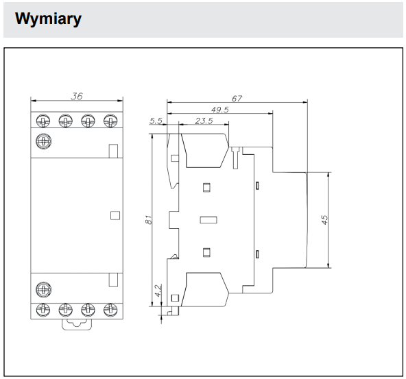 ● Bezpośredni montaż na szynie 35 mm wg PN-EN 60715