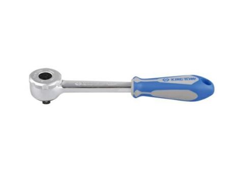 Grzechotka King Tony 1/4" z uchwytem gumowym. Rączka wykonana ze stali chromowo-wanadowej, polerowana i chromowana. Wkład ze stali molibdenowej. 72 zęby, jedno przełożenie co 5 stopni obrotu. Długość grzechotki 140 mm