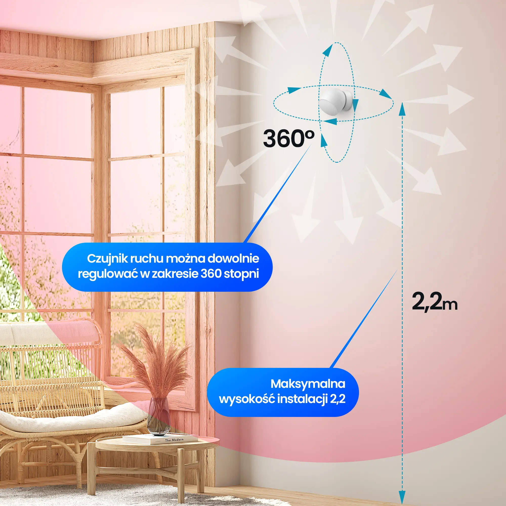 Czujnik ruchu Extralink można dowolnie regulować w zakresie 360 stopni.