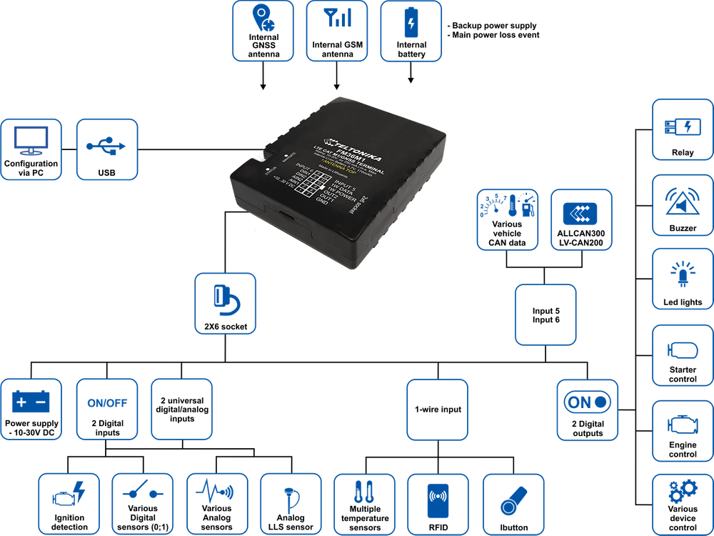 Z adapterami Teltonika CAN, terminal FM36M1 może być stosowany w rolnictwie, budownictwie czy nawet w górnictwie. Dodatkowo FM36M1 obsługuje konwertery LTE CAT M1 i NB IoT, co pozwala na korzystanie z najnowszych i najbardziej efektywnych technologii.