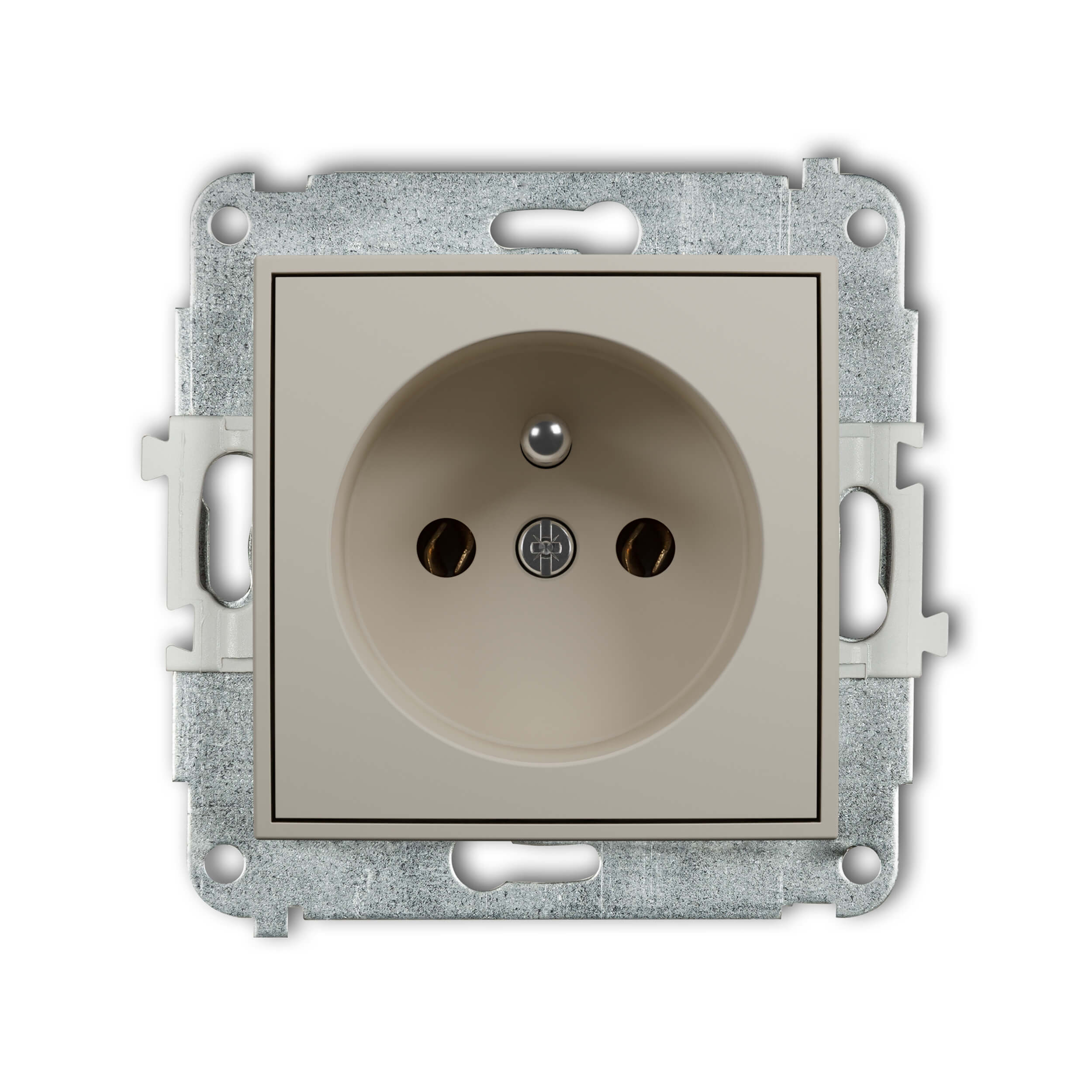 Metalowa ramka montażowa, solidna konstrukcja zapewnia prawidłowy montaż mechanizmów gniazd i łączników.