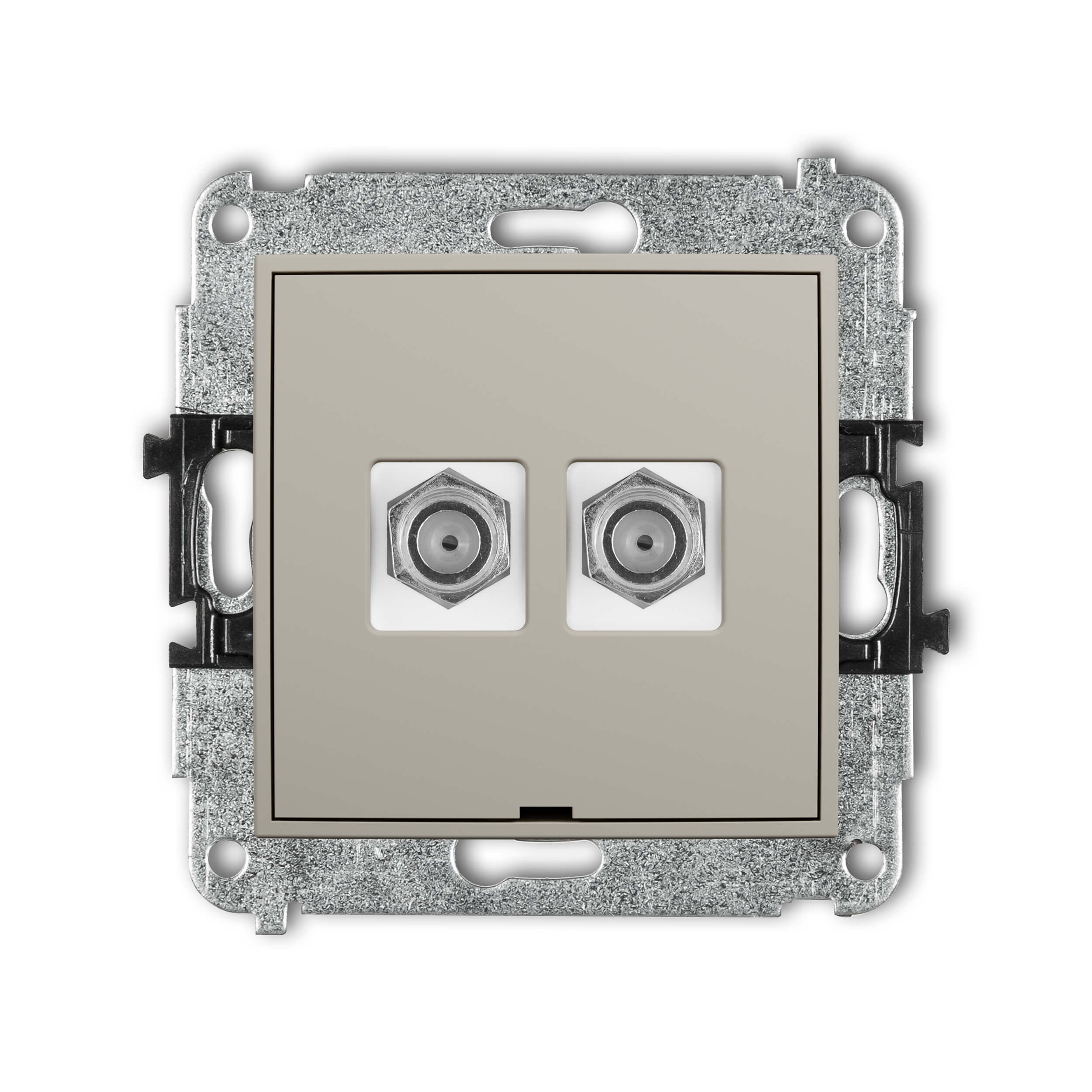 Mechanizm gniazda antenowego podwójnego typu F (SAT) niklowany, bez pola opisowego