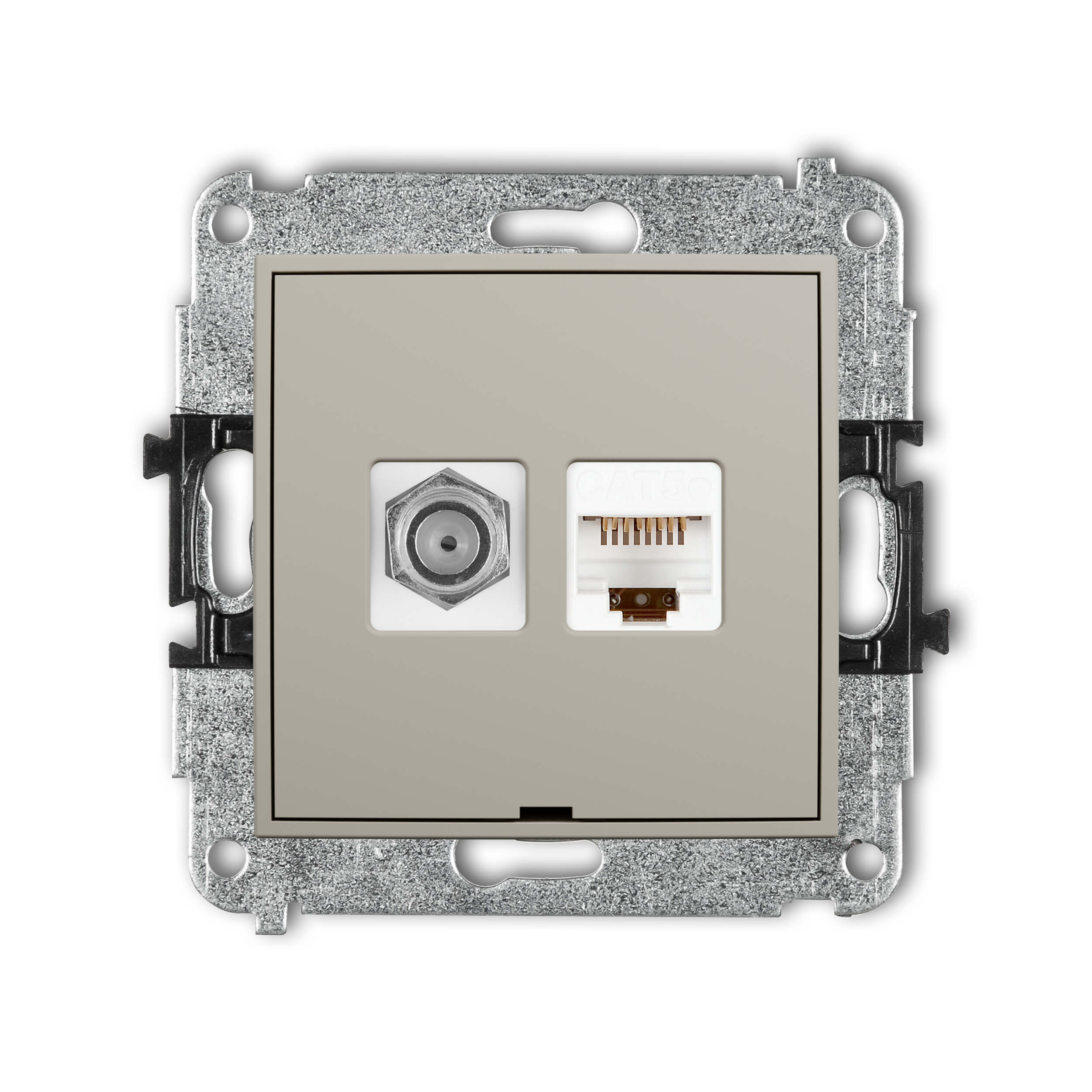 Mechanizm gniazda antenowego poj. typu F (SAT) + gniazda komp. poj. 1xRJ45, kat. 5e, 8-stykowy, bez pola opisowego