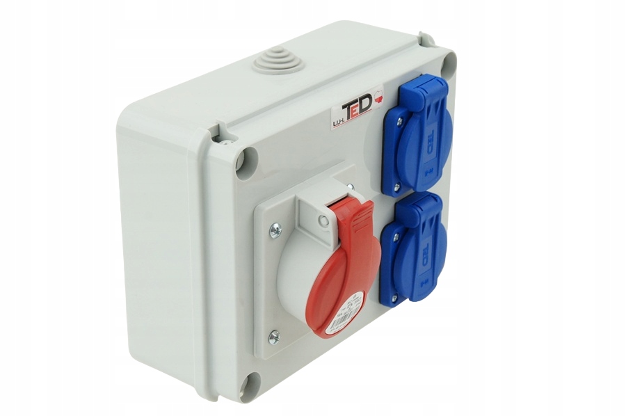 - Typy gniazd: 400V 32A/5P + 2 x 250V 16A