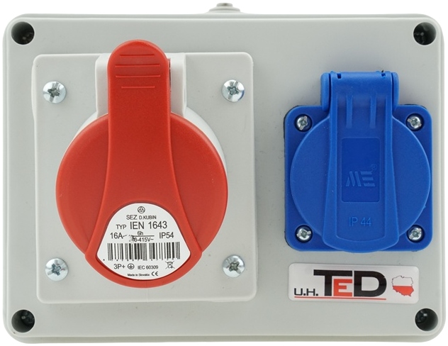 ROZDZIELNICA BUDOWLANA 2 GNIAZDA 1 X 400V 16A/4P + 1 X 250V 16A IP44