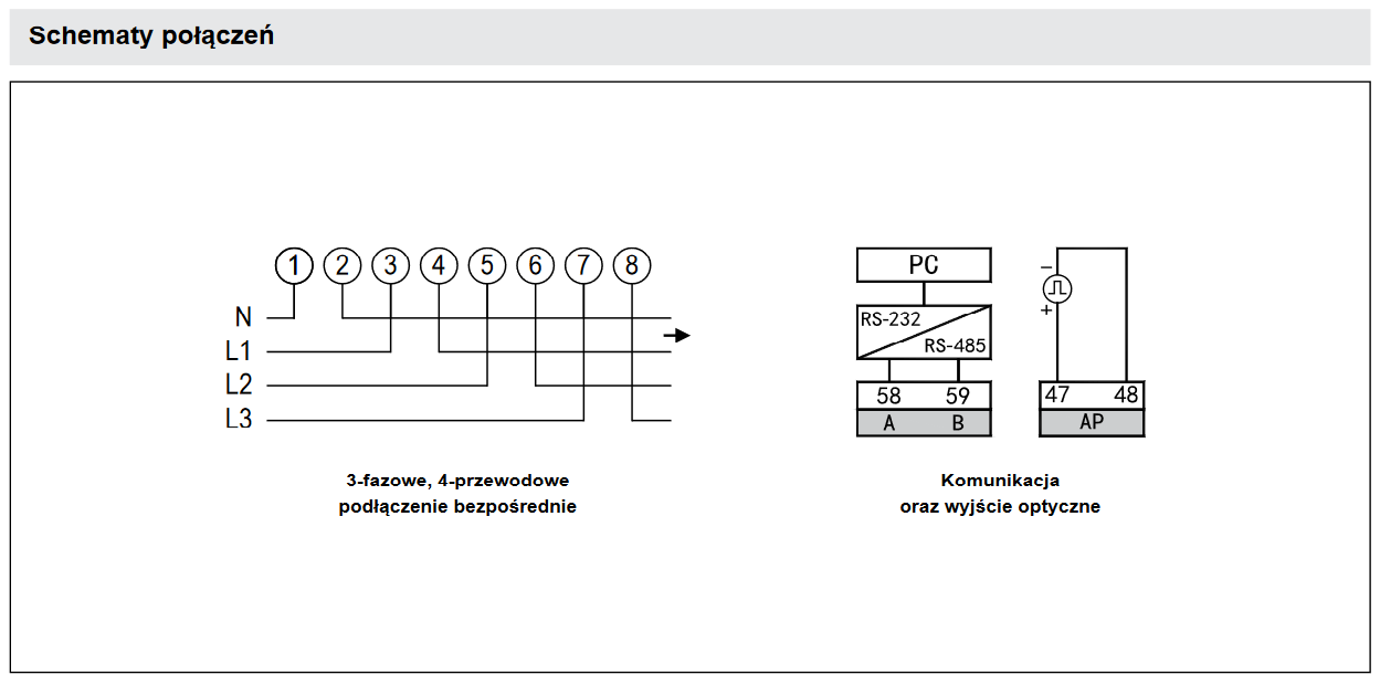 Wyjście impulsowe jak i RS 485 pozwalają na implementację urządzenia w architekturze Modbus RTU rozszerzając zastosowanie przy budowie pętli rozliczeniowych automatyki.