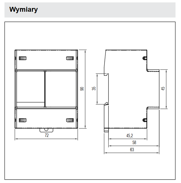 ● Montaż na szynie DIN (TH 35 mm) wg PN-EN-60715