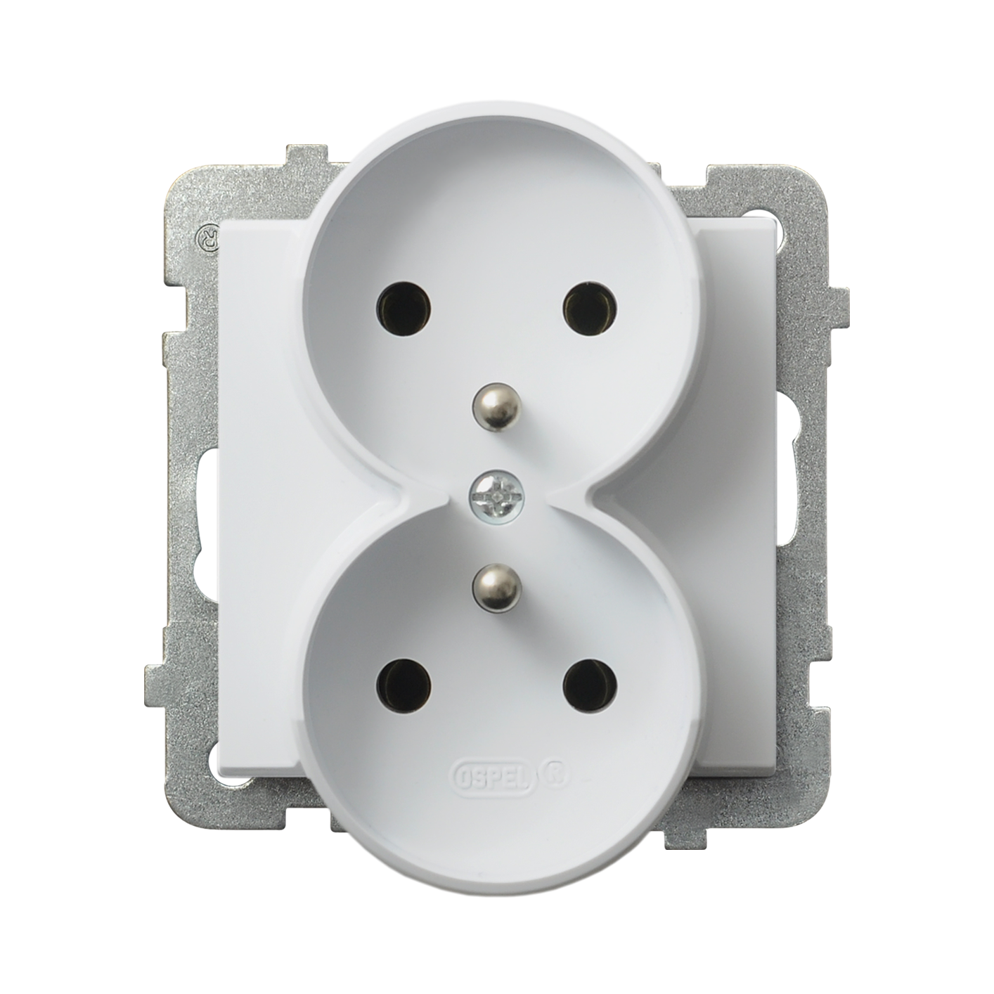 Gniazdo podwójne z uziemieniem moduł bez ramki biały mat